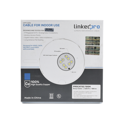 Cable Cat5e de alto rendimiento, con certificaciones ETL, UL, color gris, para aplicaciones en CCTV, redes de datos. Uso interior. Por metro.